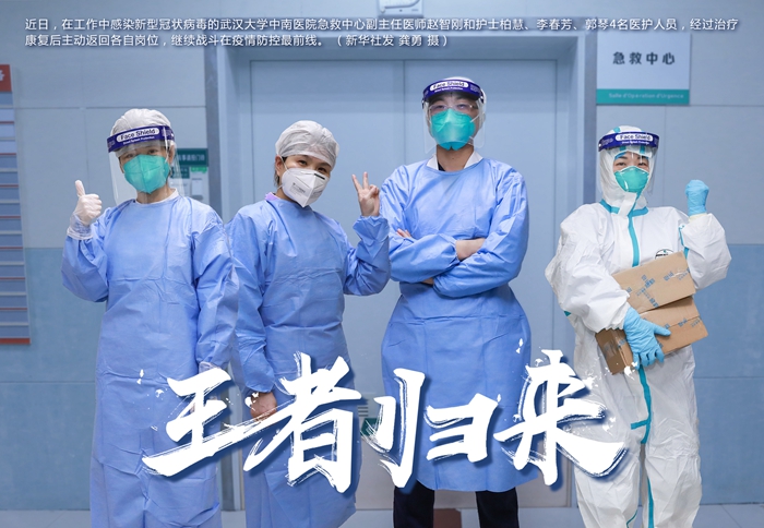 中南醫(yī)院急救中心副主任夏劍說,4名醫(yī)護人員工作中感染新型冠狀病毒,康復(fù)后不約而同重返崗位,這不僅體現(xiàn)了醫(yī)護人員無私奉獻精神,一定程度緩解科室醫(yī)護人員壓力,也向患者傳遞了戰(zhàn)勝疾病的信心。