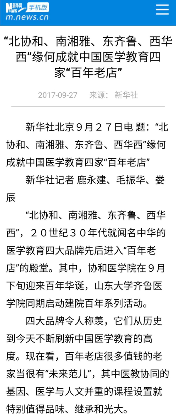 新華社有篇報(bào)道把它們稱為中國醫(yī)學(xué)教育四家“百年老店”,是20世紀(jì)30年代就聞名中華的醫(yī)學(xué)教育四大品牌。它們從歷史到今天不斷刷新中國醫(yī)學(xué)教育的高度。↓↓↓