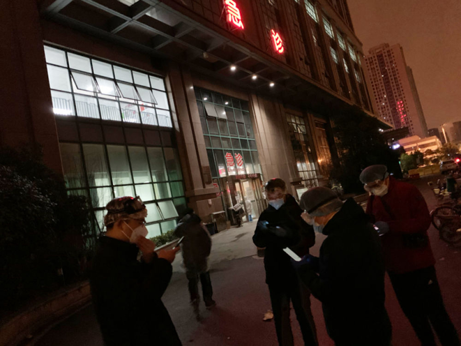 此時(shí)此地,也有太多眼淚和悲痛,還來不及釋放,就只能化作續(xù)步前行的力量。2月6日晚,李文亮醫(yī)生病危,全國網(wǎng)友悲慟,希望出現(xiàn)轉(zhuǎn)機(jī)。午夜時(shí)分我趕到他所在的醫(yī)院樓下,寒風(fēng)中,和一群同行站在門口,想不服輸?shù)氐纫粋€(gè)奇跡。直到凌晨3點(diǎn),沒有奇跡發(fā)生。因?yàn)樽叩么颐?,缺少防護(hù)用品,我放棄了貿(mào)然進(jìn)入隔離區(qū)拍攝的想法。在空無一人的醫(yī)院門口,只能深鞠一躬后離去。