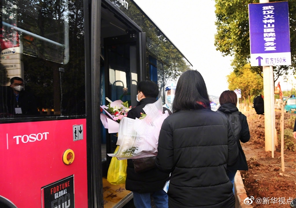 經(jīng)過火神山醫(yī)院醫(yī)護人員的精心診治,首批7名符合出院標準的新冠肺炎確診患者13日下午出院?;鹕裆结t(yī)院籌備工作指揮部統(tǒng)一安排車輛將患者分別送回所居住小區(qū)門口。