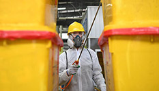 早上6點(diǎn),武漢市武昌區(qū)水果湖街道環(huán)衛(wèi)所,匡丹鳳和搭檔翟愛珍熟練地穿上橙色的工作裝,套上防護(hù)服,戴好口罩、手套、護(hù)目鏡后,背著消毒噴霧器開始了一天的工作。