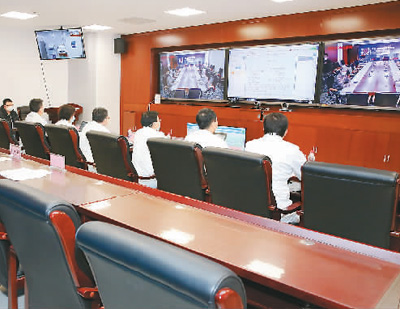 2月9日,解放軍總醫(yī)院和武漢火神山醫(yī)院開展首次5G網(wǎng)絡(luò)遠程會診。孔令占攝(新華社發(fā))