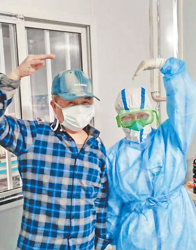 近日,雷神山醫(yī)院內(nèi)醫(yī)護(hù)人員與患者在一起。高 翔攝(影像中國(guó))