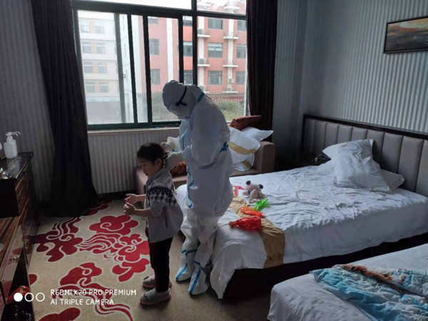 一大家子被隔離,兩個孩子不能丟在家里沒人管,這給安慶市迎江區(qū)疫情防控指揮部安置組出了道難題?!罢l來照顧已是密切接觸者的兩個年幼的孩子呢?”安慶市迎江區(qū)濱江街道黨工委書記趙明來告訴記者,大家商議之后,決定把兩個小家伙送到隔離醫(yī)學觀察點,由專業(yè)的醫(yī)護人員照顧。