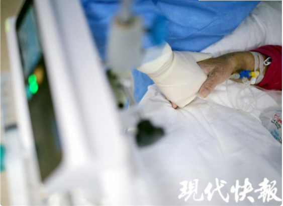 2月18日下午,現(xiàn)代快報記者走進“紅區(qū)”——重癥隔離病房里,用鏡頭記錄下一組組“我和你”的故事。