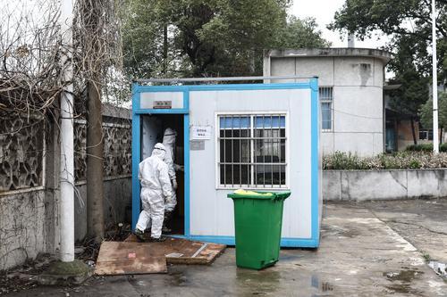 2月26日,湖北省武漢市,幾名醫(yī)療廢物處理員在醫(yī)療垃圾暫存點搬運。中青報·中青網(wǎng)記者 趙迪/攝