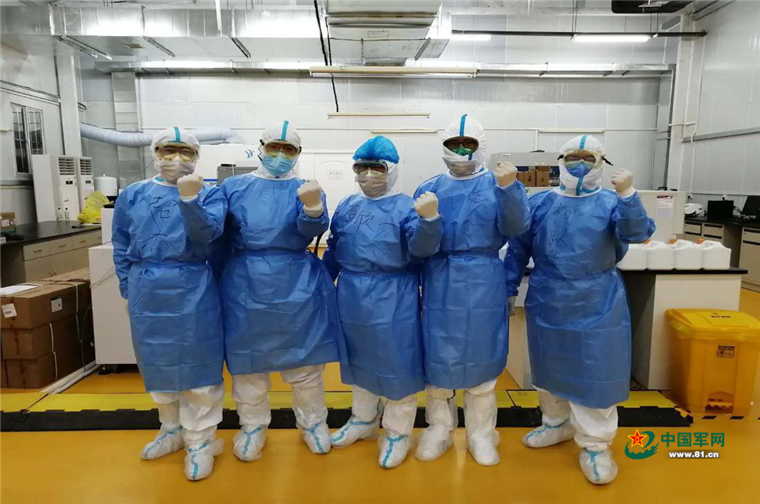 剛剛轉(zhuǎn)改文職人員的劉威副研究員、楊超杰博士,不顧孩子年幼、妻子懷孕,主動(dòng)申請(qǐng)前出武漢協(xié)助火神山醫(yī)院建立檢測(cè)平臺(tái),每天全“服”武裝埋頭實(shí)驗(yàn)室,一干就是一個(gè)多月?!拔覀冏鳛榧部貞?zhàn)線的國(guó)家隊(duì)、八一隊(duì),就是要堅(jiān)決貫徹習(xí)主席指示要求,干最危險(xiǎn)的事,做最艱苦的工作,‘讓黨旗在防控疫情斗爭(zhēng)第一線高高飄揚(yáng)’”,這是中心領(lǐng)導(dǎo)經(jīng)常說(shuō)的話。