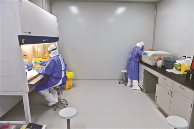 采集樣本之后,新冠病毒是如何被檢測(cè)出來的?核酸檢測(cè)是新冠肺炎判定的重要環(huán)節(jié),每一個(gè)被采樣的人都曾等待“宣判”:核酸檢測(cè)陰性還是陽性。而在各級(jí)疾控中心微生物檢測(cè)實(shí)驗(yàn)室里,有這么一群“病毒偵查員”,他們?cè)谌庋劭床灰姷奈⒂^世界里,日日埋頭尋找病毒的身影。他們不直接接觸病人,卻在努力剝開病毒的真實(shí)面目,為疫情的處置提供科學(xué)、有效、有力的“大數(shù)據(jù)”支持。一份樣本牽涉整個(gè)疫情防控大局,他們要對(duì)每一份樣本負(fù)責(zé)。從1月20日至今,豐臺(tái)區(qū)疾病預(yù)防控制中心微生物檢驗(yàn)科的15名“戰(zhàn)士”已經(jīng)連續(xù)奮戰(zhàn)了40多天,每周7×24小時(shí),檢測(cè)了上千份樣本……近日,北京青年報(bào)記者穿上了防護(hù)服,跟隨“病毒偵查員”們深入病毒檢測(cè)一線,揭開他們的神秘面紗。