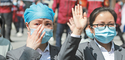 3月17日,甘肅省第二批支援武漢醫(yī)療隊離開位于武漢東西湖的駐地,駐地工作人員深情相送。本報記者 李舸攝