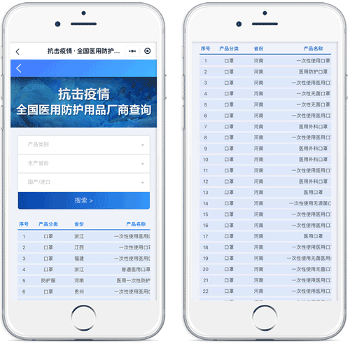 在頁面輸入對應(yīng)信息,即可查詢到有相關(guān)資質(zhì)的廠商名單。再拿出你的防護(hù)用品對照注冊證編號等信息是否準(zhǔn)確無誤,凡未經(jīng)藥監(jiān)局系統(tǒng)批準(zhǔn)的廠商產(chǎn)品,都不具備醫(yī)用資質(zhì)和效果。