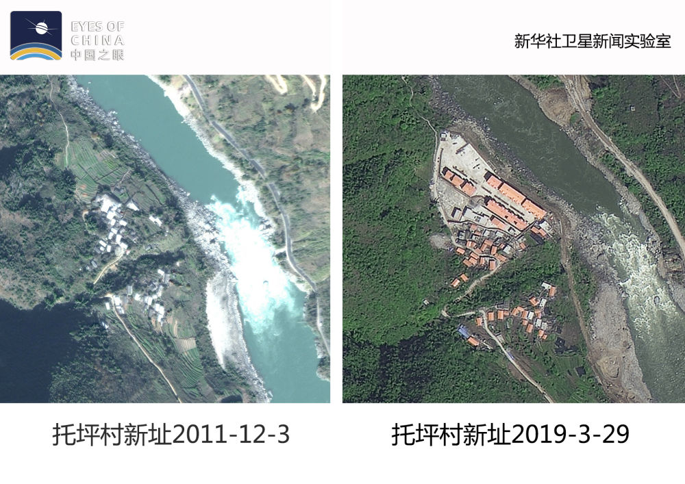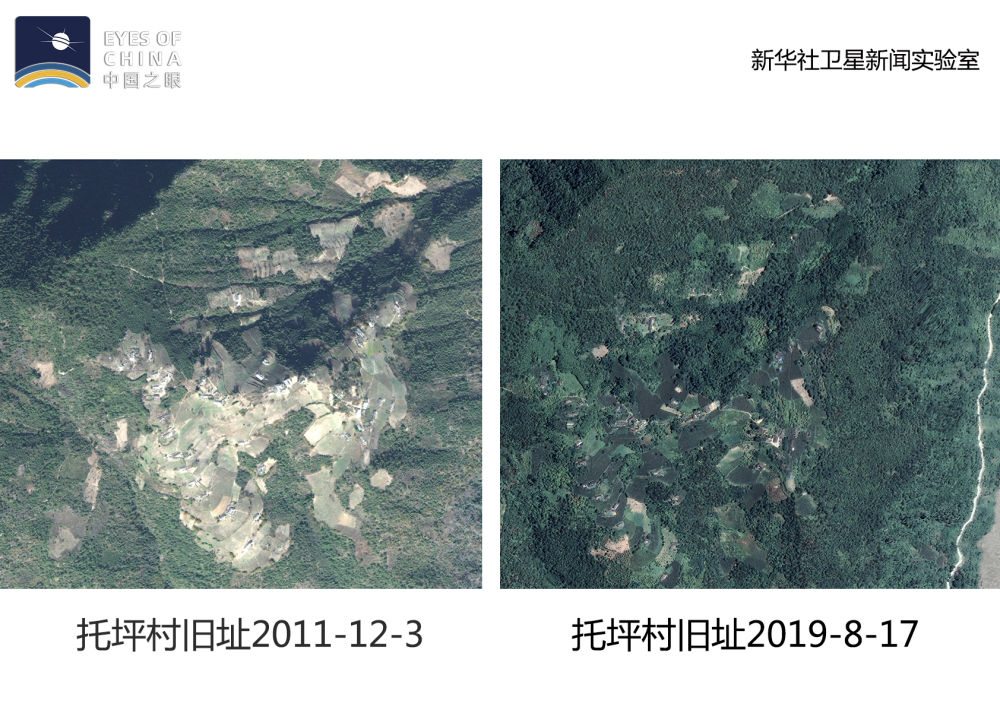 從衛(wèi)星上看,托坪村舊址逐漸“消失”,與高黎貢山的綠色融為了一體。