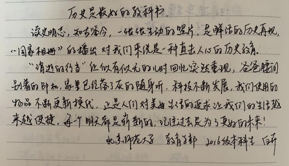 ↑北京師范大學(xué)學(xué)生劉曉航的觀后感