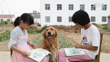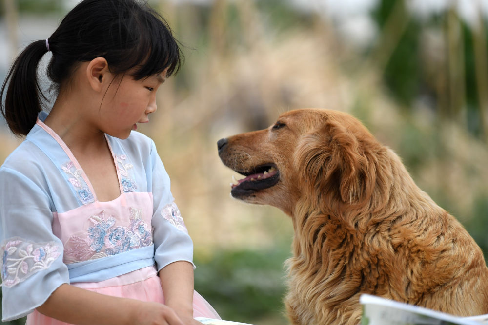 ↑?小思揚(yáng)和同學(xué)家的狗玩耍。
