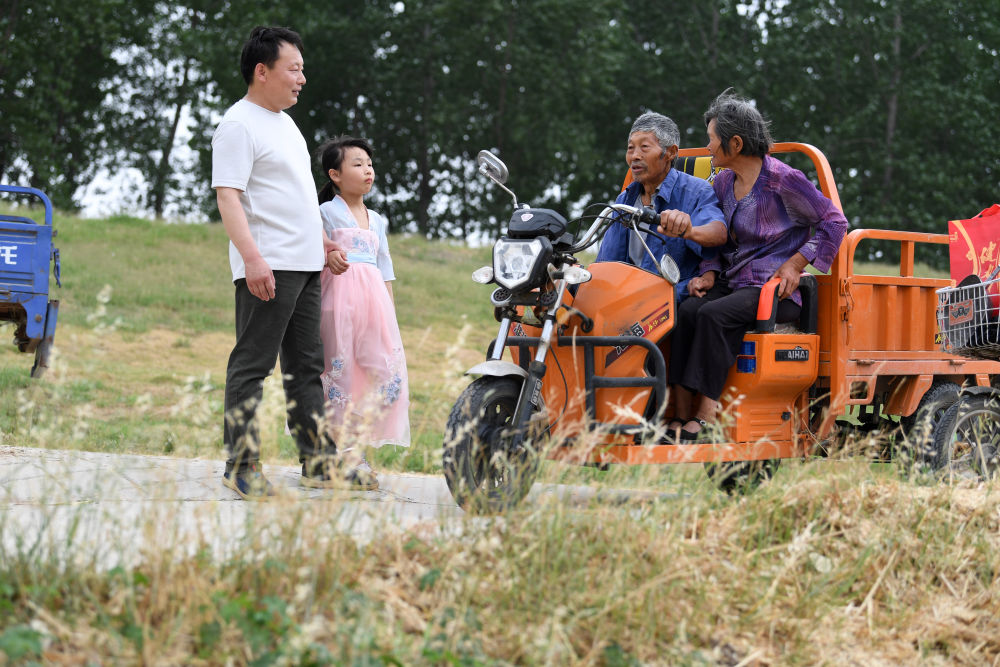 ↑?小思揚(yáng)和爸爸一起跟村民聊天。