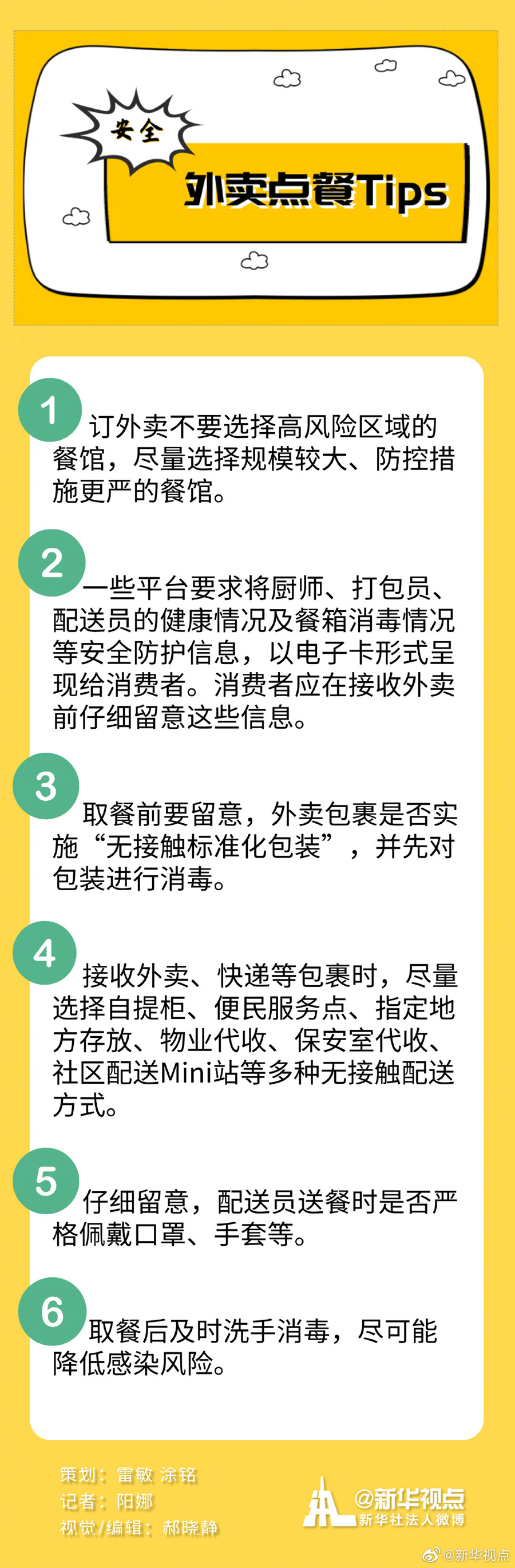 6月23日下午,北京市通報了一例外賣平臺送餐人員感染新冠肺炎的病例。該病例6月1日至17日每日通過“餓了么”平臺接單送餐,平均每天接50單左右。外賣員接觸人員多、暴露風(fēng)險高,大家開始擔(dān)憂,病毒傳播途徑又多了一條。外賣還能點嗎?怎么點外賣、怎么收快遞才能降低被傳染風(fēng)險?小編為你準備了這份“外賣點餐Tips”,收好!