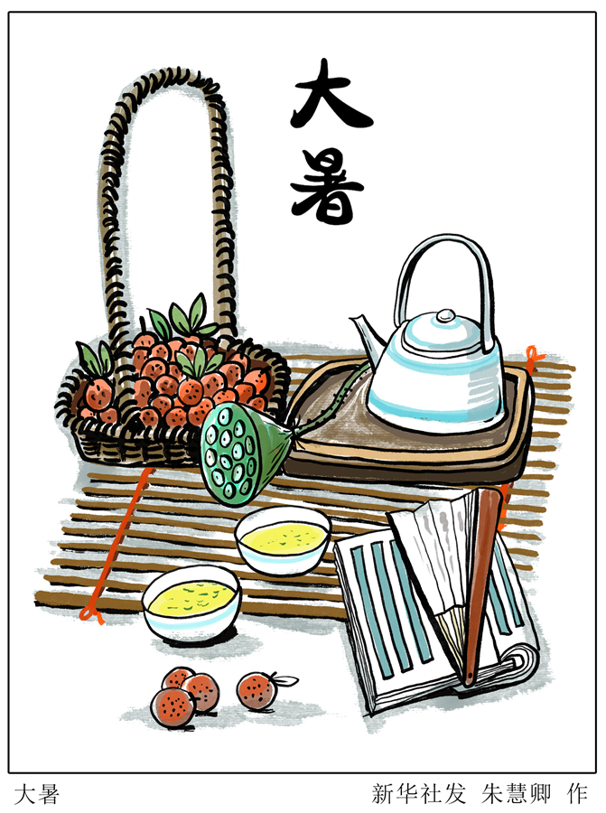 “赤日幾時(shí)過(guò),清風(fēng)無(wú)處尋”?!按笫睢笔且荒曛凶顭岬囊粋€(gè)節(jié)氣,古籍《月令七十二候集解》中解釋說(shuō):“暑,熱也。就熱之中分為大小,月初為小,月中為大”??釤岫嘤?、高溫潮濕是此時(shí)節(jié)的天氣特點(diǎn),“桑拿天”幾乎成為常態(tài)。