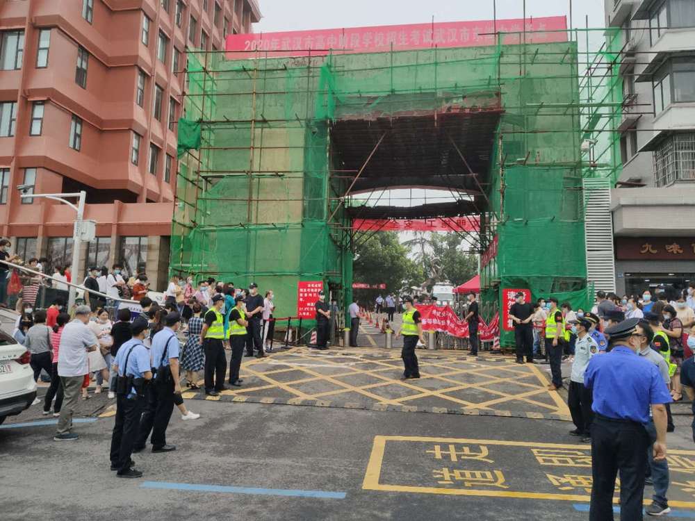 記者在武漢東湖中學(xué)考點(diǎn)門前看到,交警、民警、水務(wù)、電力、城管等多個(gè)部門工作人員嚴(yán)陣以待,以高考標(biāo)準(zhǔn)迎接考生進(jìn)場。