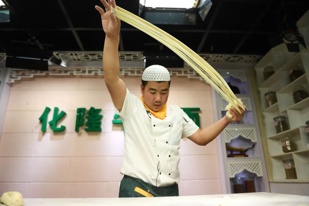 今年50歲出頭的海東市循化撒拉族自治縣白莊鎮(zhèn)山根村村民馬維林,是走出大山創(chuàng)業(yè)的第一代拉面人。打拼了20多年的他,如今在長沙開了3家“撒拉人家”拉面連鎖店。馬維林說:“山根村現(xiàn)在90%以上的人家都在外開拉面店或者在拉面店務(wù)工,依靠拉面,整個村子都脫了貧。”