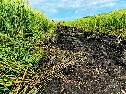 記者現(xiàn)場看到,陳巴爾虎旗特尼河林場大片大片麥田、油菜田里,被鏟出一道道觸目驚心、黑綠相間的“斑馬線”?!霸儆惺嗵炀鸵崭盍?,現(xiàn)在毀了實在可惜!”附近群眾說。