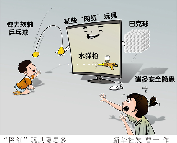 巴克球、水彈槍、彈力軟軸乒乓球……這個暑期,被網(wǎng)絡社交平臺帶火的“網(wǎng)紅”玩具,成為不少孩子在家玩耍的新寵。雖然名氣大、買家多,但一些“網(wǎng)紅”玩具其實是粗制濫造的“三無產(chǎn)品”,記者在調查中發(fā)現(xiàn)諸多安全隱患。