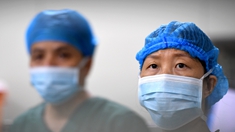 8月17日,甘肅省第二人民醫(yī)院介入醫(yī)學(xué)科主任醫(yī)師余新林在護士的幫助下佩戴鉛帽,準(zhǔn)備進行手術(shù)。新華社記者 朱藝琳 攝