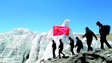 普瑪江塘邊境派出所民警們在崗布冰川巡邏。受訪者供圖