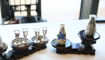 10月26日,工作人員手持托盤(pán)展示88克拉超級(jí)黑鉆。 新華社記者方喆攝