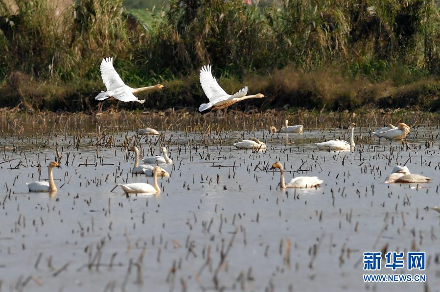 越冬候鳥棲息在鄱陽湖濕地水域(11月5日攝)。新華社記者 彭昭之 攝