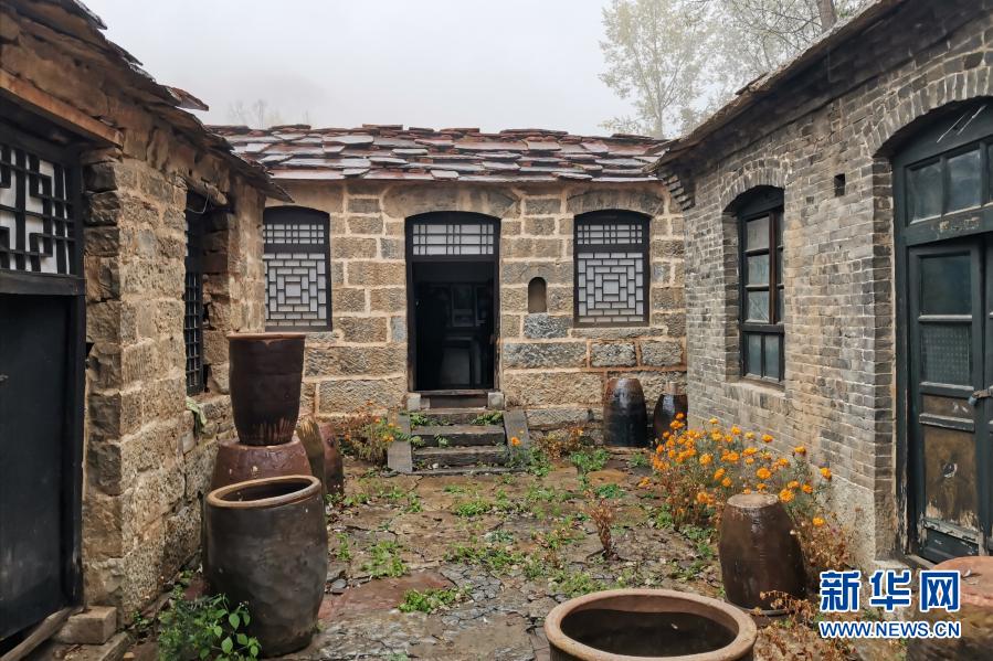 山西省左權(quán)縣芹泉鎮(zhèn)橫嶺村一座獨(dú)具太行民居特色的石房院落掛上了“小二黑院”的牌子(10月14日攝)。新華社記者 許雄 攝