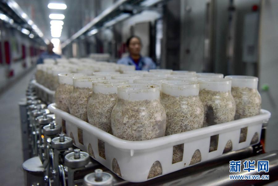 在自動化注射液體菌種后,一排排內(nèi)部裝滿培養(yǎng)基的透明塑料瓶,通過空中傳輸帶,被送進(jìn)能容納5萬瓶的出菇房,經(jīng)自動抬升被整整齊齊地?cái)[進(jìn)10層貨架……這是記者在駐馬店市泌陽縣鮮菇坊生物科技有限公司看到的一幕。
