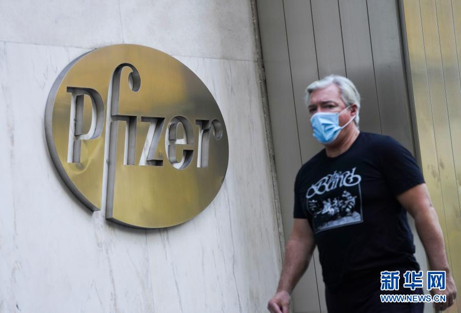 11月9日,行人從位于美國(guó)紐約的輝瑞全球總部大樓前走過。新華社記者 王迎 攝