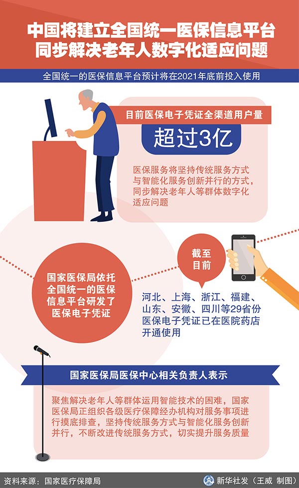 新華社北京11月26日電(記者屈婷)記者從國家醫(yī)療保障局了解到,全國統(tǒng)一的醫(yī)保信息平臺(tái)預(yù)計(jì)將在2021年底前投入使用,目前醫(yī)保電子憑證全渠道用戶量超過3億。同時(shí),醫(yī)保服務(wù)將堅(jiān)持傳統(tǒng)服務(wù)方式與智能化服務(wù)創(chuàng)新并行的方式,同步解決老年人等群體數(shù)字化適應(yīng)問題。