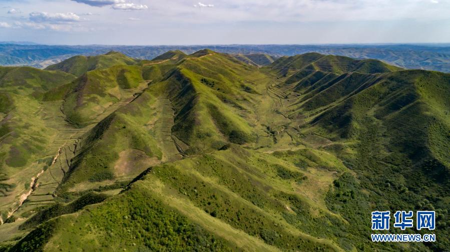 這是6月3日拍攝的被綠色覆蓋的寧夏固原市原州區(qū)馬東山林場(chǎng)(無(wú)人機(jī)照片)。新華社記者 王鵬 攝