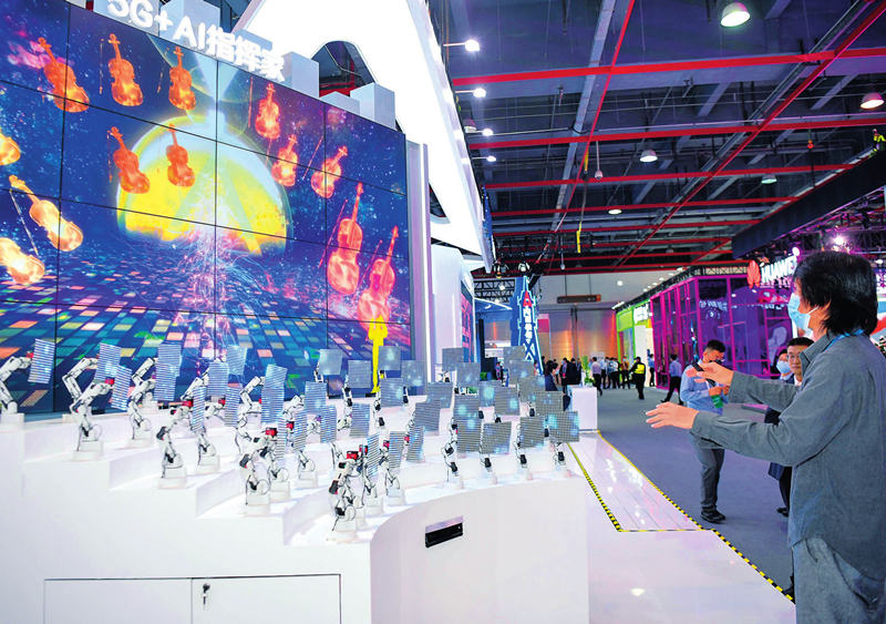 11月26日,工作人員在2020世界5G大會上調(diào)試5G體驗設施 鄧華攝 / 本刊