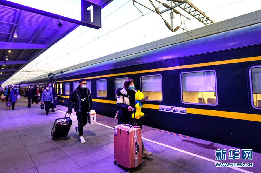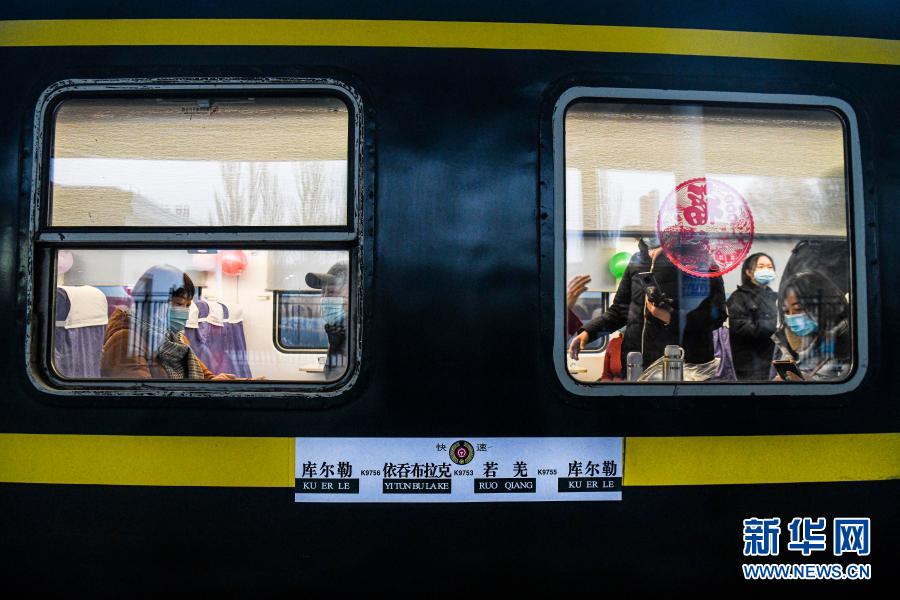 12月9日,在新疆庫爾勒站,旅客剛剛登上K9756次客運列車。新華社記者 王菲 攝