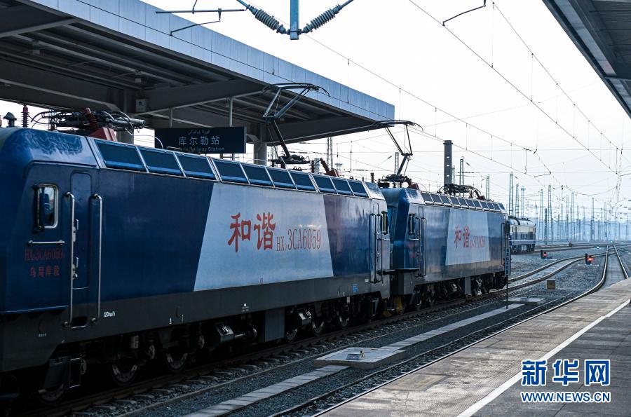 12月9日,在新疆庫爾勒站,32812次貨運列車準備發(fā)車。新華社記者 王菲 攝