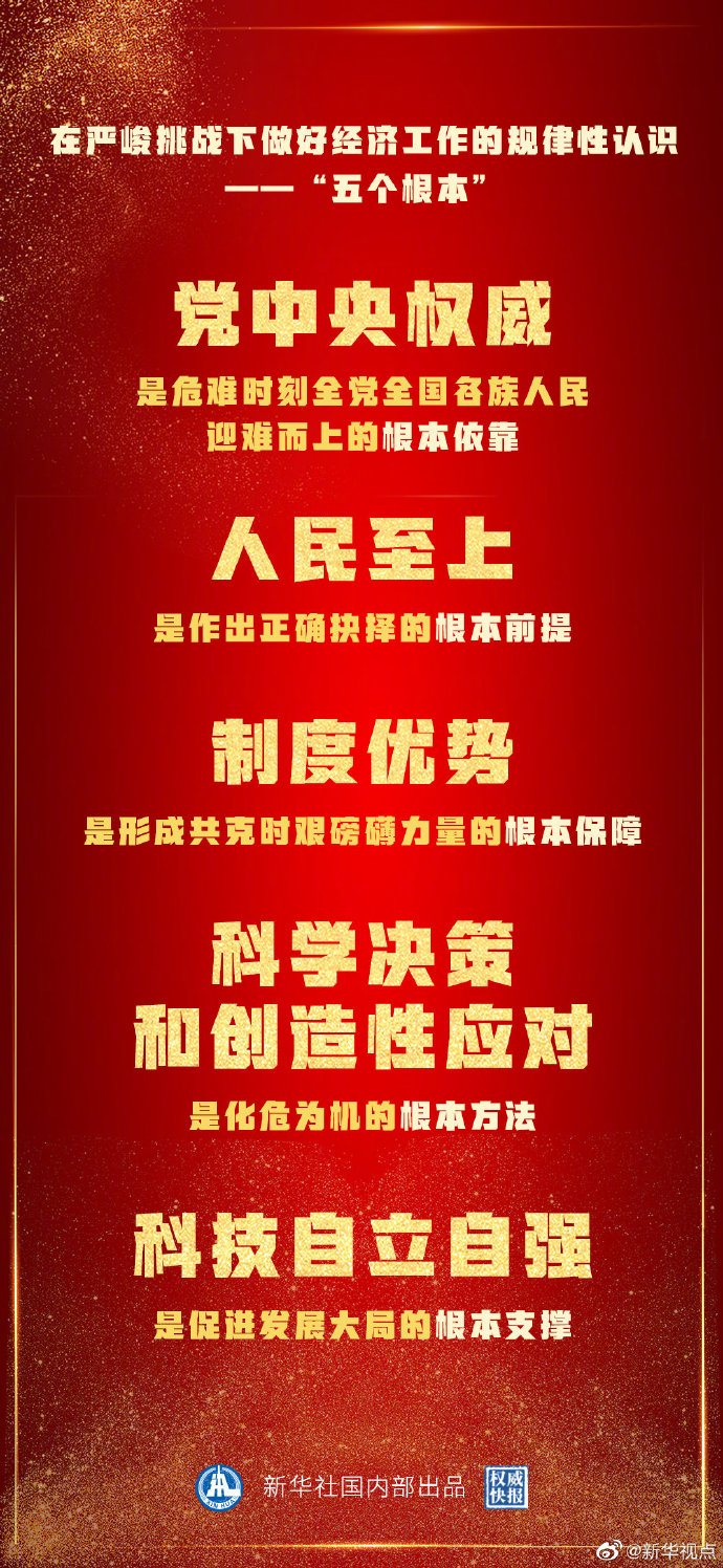 極不平凡的2020年,中國(guó)交出一份人民滿意、世界矚目、可以載入史冊(cè)的答卷。來(lái)之不易的成績(jī)背后有何“成功秘訣”?中央經(jīng)濟(jì)工作會(huì)議強(qiáng)調(diào),在統(tǒng)籌國(guó)內(nèi)國(guó)際兩個(gè)大局、統(tǒng)籌疫情防控和經(jīng)濟(jì)社會(huì)發(fā)展的實(shí)踐中,我們深化了對(duì)在嚴(yán)峻挑戰(zhàn)下做好經(jīng)濟(jì)工作的規(guī)律性認(rèn)識(shí)。會(huì)議提出的這“五個(gè)根本”經(jīng)驗(yàn),內(nèi)涵深刻、啟迪未來(lái)。(鄒多為、劉文昕 海報(bào)設(shè)計(jì):苗夏陽(yáng))