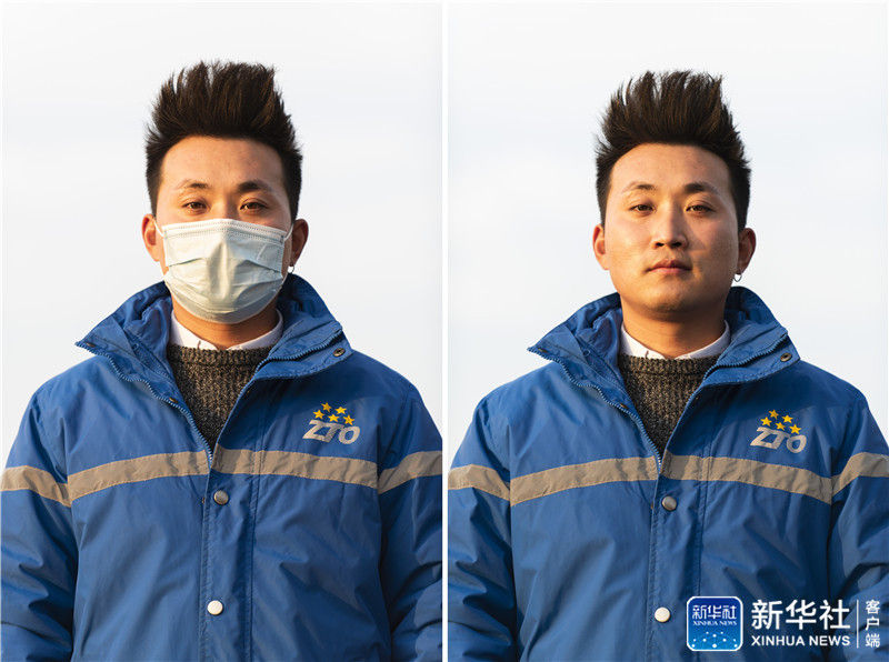 12月10日拍攝的中通快遞北京廠洼路網(wǎng)點(diǎn)的快遞員李杰肖像(拼版照片)。新華社記者 張豪夫 攝