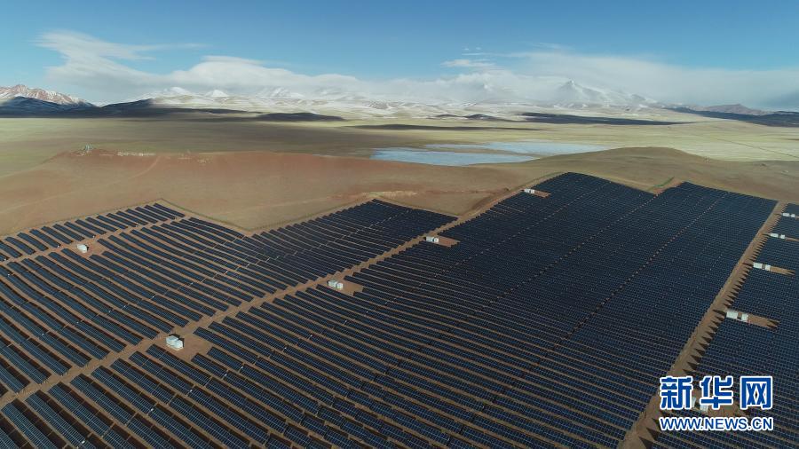 這是2019年1月31日在西藏那曲市雙湖縣拍攝的太陽能發(fā)電站(無人機照片)。新華社記者 普布扎西 攝