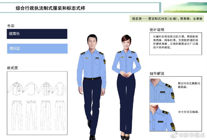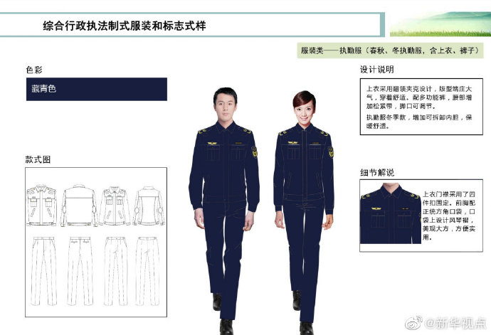 【這些綜合行政執(zhí)法部門將統(tǒng)一著裝,你喜歡嗎?】財政部、司法部日前印發(fā)《綜合行政執(zhí)法制式服裝和標志管理辦法》,明確加強生態(tài)環(huán)境保護、交通運輸、農(nóng)業(yè)、文化市場、應(yīng)急管理、市場監(jiān)管等綜合行政執(zhí)法制式服裝和標志管理。這6支綜合行政執(zhí)法隊伍將統(tǒng)一著裝,不同執(zhí)法隊伍通過標志中的名稱和圖案加以區(qū)分,徹底解決長期以來不同執(zhí)法部門著裝五花八門的問題。來看看這些“新衣”預覽吧?。ㄓ浾呱赇叀钻枺?/p>