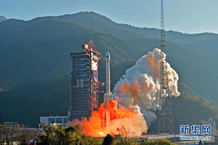 我國在西昌衛(wèi)星發(fā)射中心用長征三號(hào)乙運(yùn)載火箭(及配套遠(yuǎn)征一號(hào)上面級(jí)),以“一箭雙星”方式成功發(fā)射第50、51顆北斗導(dǎo)航衛(wèi)星(2019年11月23日攝)。新華社發(fā)(郭文彬 攝)