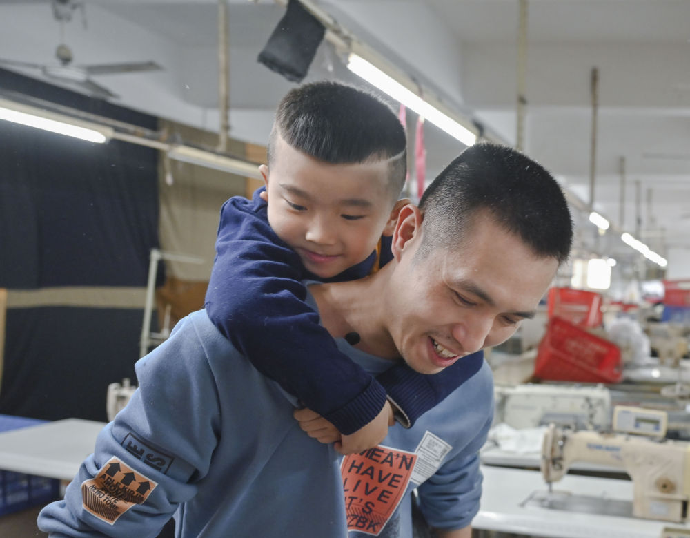 今年春節(jié),黃海龍決定在福建就地過年,這讓5歲的小兒子聰聰高興不已。這是聰聰?shù)谝淮卧诔錾睾桶职謰寢屢黄疬^年。盡管如此,黃海龍還是割舍不下遠(yuǎn)在四川老家的親人,特地為他們做了羽絨服、袖套、枕頭、圍裙等寄回去。