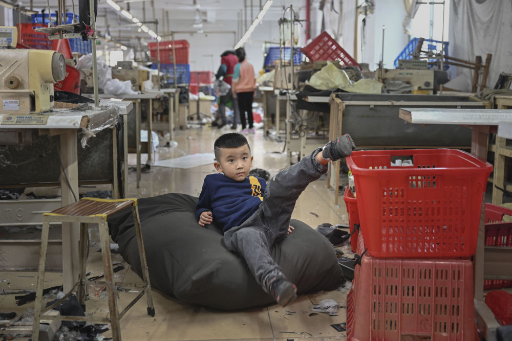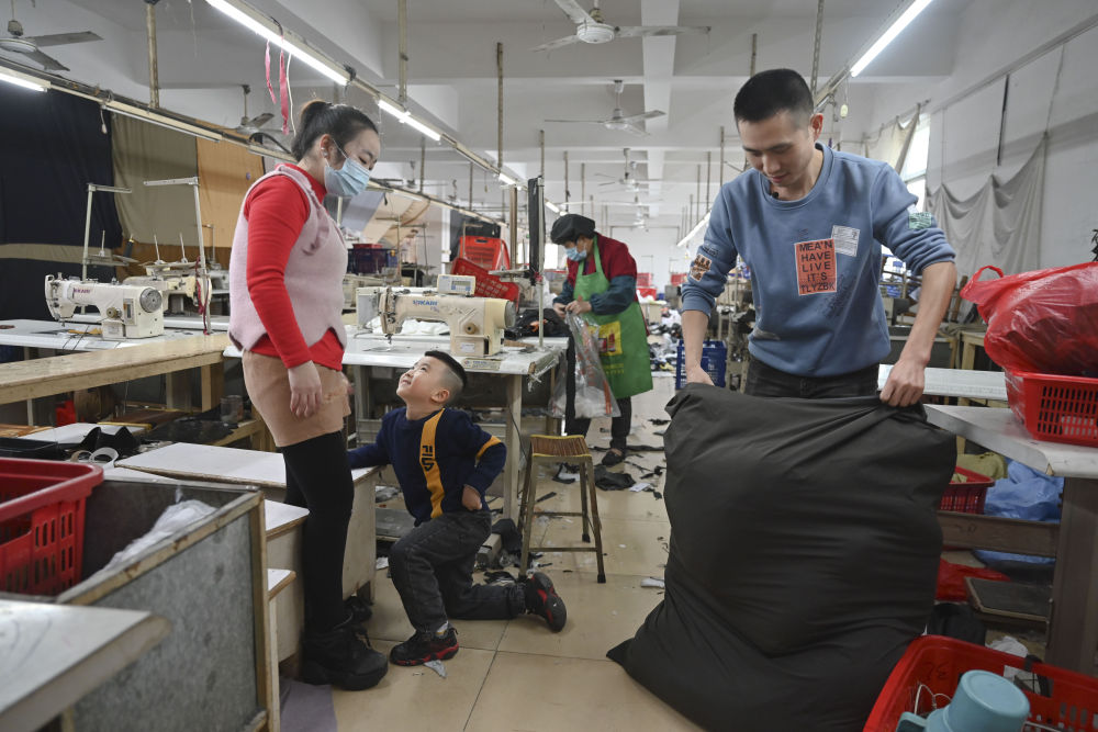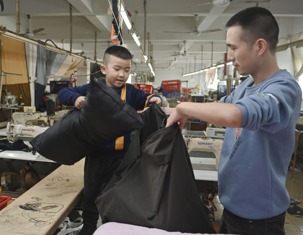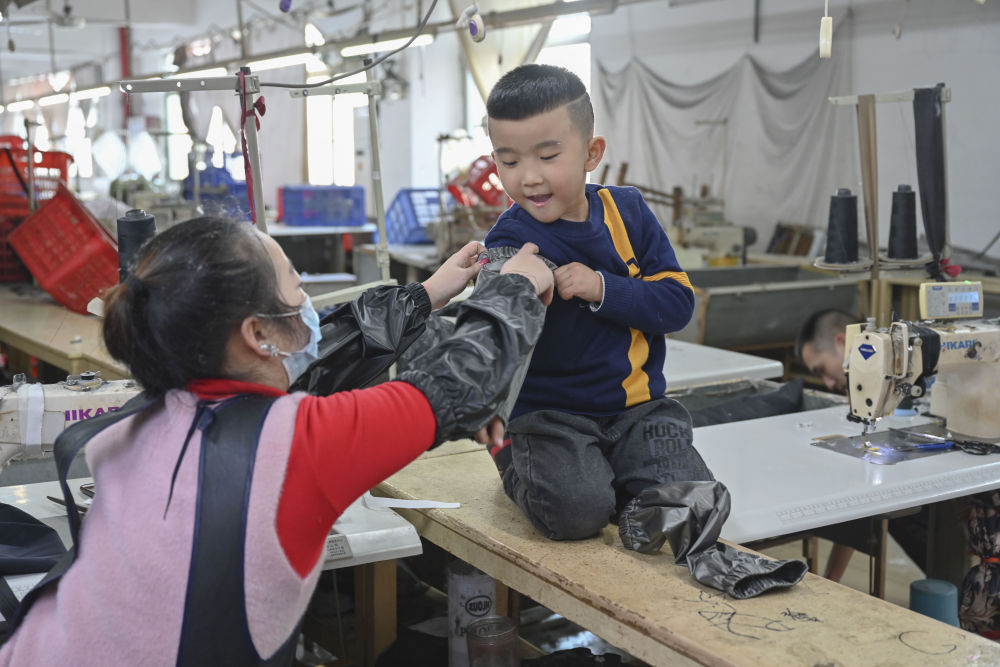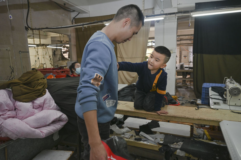 1月26日,在福建省石獅市的金利萊斯服裝廠,聰聰和黃海龍?jiān)谝黄稹?/span>