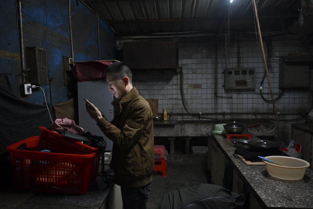 1月26日,黃海龍?jiān)趶N房用手機(jī)查看剛剛收到的工資明細(xì)。這一年他們夫妻每天工作超過12小時(shí),收入合計(jì)約16萬。