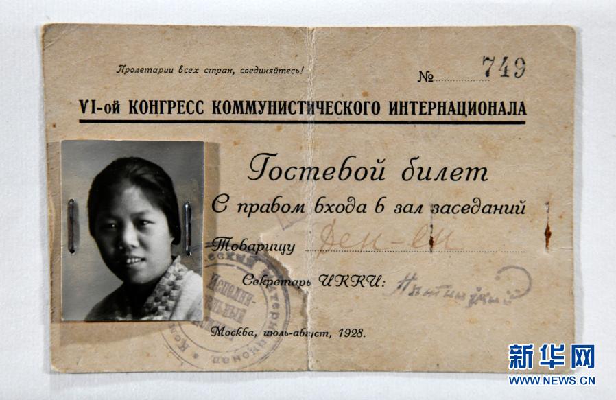 “這是一個(gè)長(zhǎng)方形的紙質(zhì)證件,俄文印刷的,上面印有‘全世界無(wú)產(chǎn)者聯(lián)合起來(lái)’‘共產(chǎn)國(guó)際第六次代表大會(huì)’,用訂書(shū)釘固定了一張鄧穎超同志的黑白照片,加蓋有共產(chǎn)國(guó)際執(zhí)委會(huì)的徽章?!崩钋诮榻B說(shuō),這是1928年鄧穎超參加共產(chǎn)國(guó)際六大的列席證。此行,鄧穎超還有一個(gè)更重要的任務(wù),陪同周恩來(lái)參加黨的第六次全國(guó)代表大會(huì)。