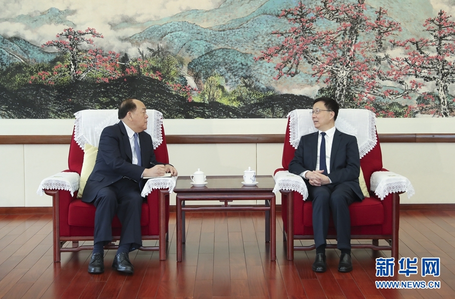 韓正充分肯定了香港、澳門特別行政區(qū)政府近期的工作。他表示,全國人大關(guān)于完善香港特別行政區(qū)選舉制度的決定和全國人大常委會對香港基本法附件一和附件二的有關(guān)修訂,為落實“愛國者治港”原則、確保香港長治久安提供了堅實的法律保障,香港特別行政區(qū)要抓緊做好本地立法相關(guān)工作,組織好今明兩年系列選舉。澳門也要全力做好第七屆立法會換屆選舉工作。香港、澳門都要繼續(xù)把疫情防控作為推動經(jīng)濟復蘇和民生改善的首要工作,中央政府將一如既往給予全力支持。要認真落實好中央賦予前海、橫琴和河套地區(qū)的支持政策,進一步創(chuàng)新和完善體制機制,發(fā)揮好港澳獨特優(yōu)勢,共同推進大灣區(qū)建設(shè),保持香港、澳門的長期繁榮穩(wěn)定,促進“一國兩制”成功實踐不斷向前發(fā)展。