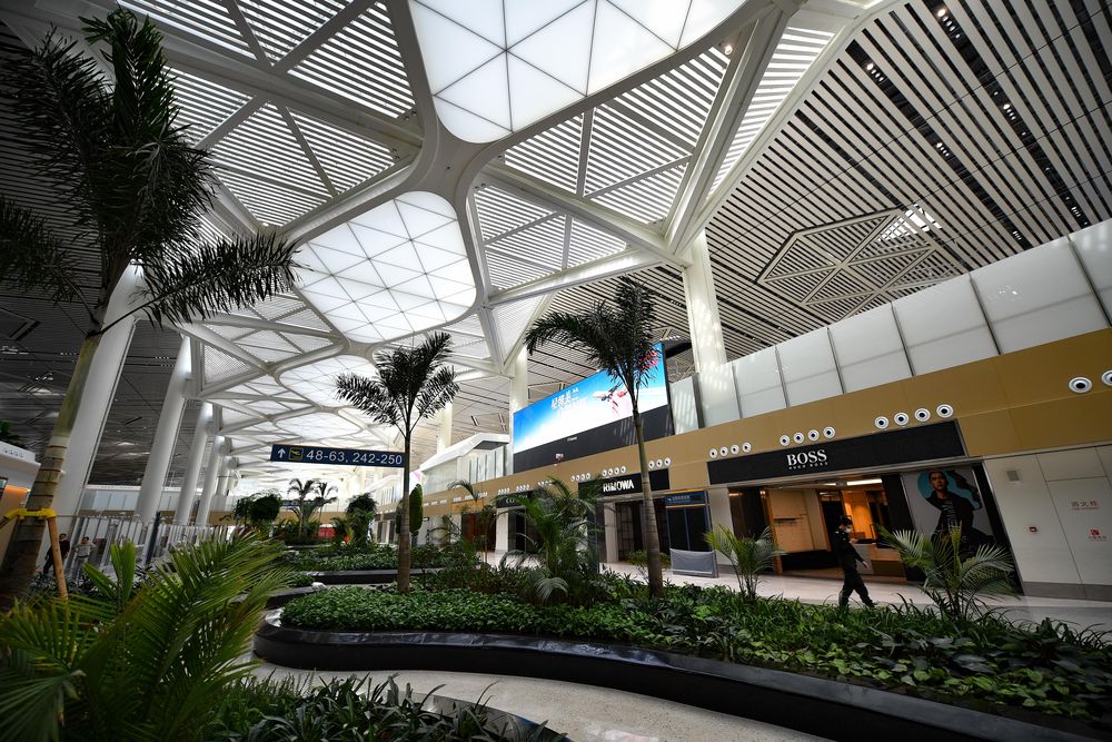 海口美蘭國際機場二期擴建項目T2航站樓內(nèi)景。(新華社記者郭程2020年12月27日攝)