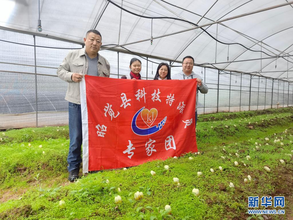 2020年6月3日,西南醫(yī)科大學副教授夏紀毅(右一)與同事在四川涼山彝族自治州昭覺縣火普村考察靈芝種植產業(yè)時合影。新華社發(fā)