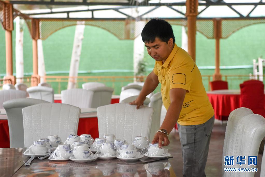 7月5日,在新疆阿克蘇市依干其鄉(xiāng)巴格其村,村民在自己經營的農家樂里忙碌。新華社記者 丁磊 攝