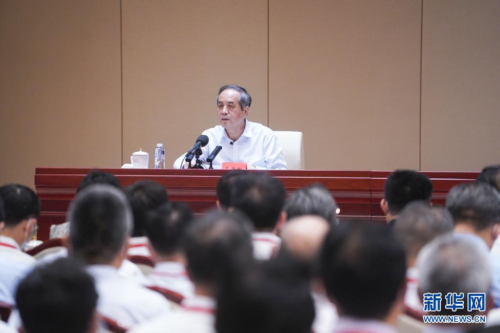 7月5日,黨史學(xué)習(xí)教育中央宣講團成員曲青山在首場報告會上作宣講報告。新華社記者 陳曄華 攝